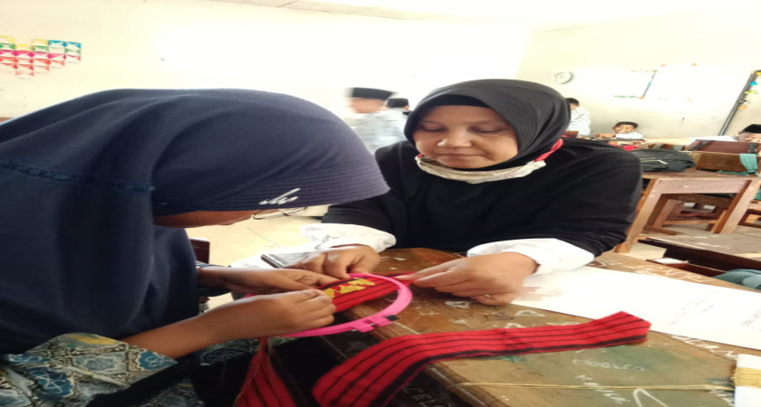 Peserta didik praktik menyulam kain tapis sebagai upaya mencintai budaya Lampung